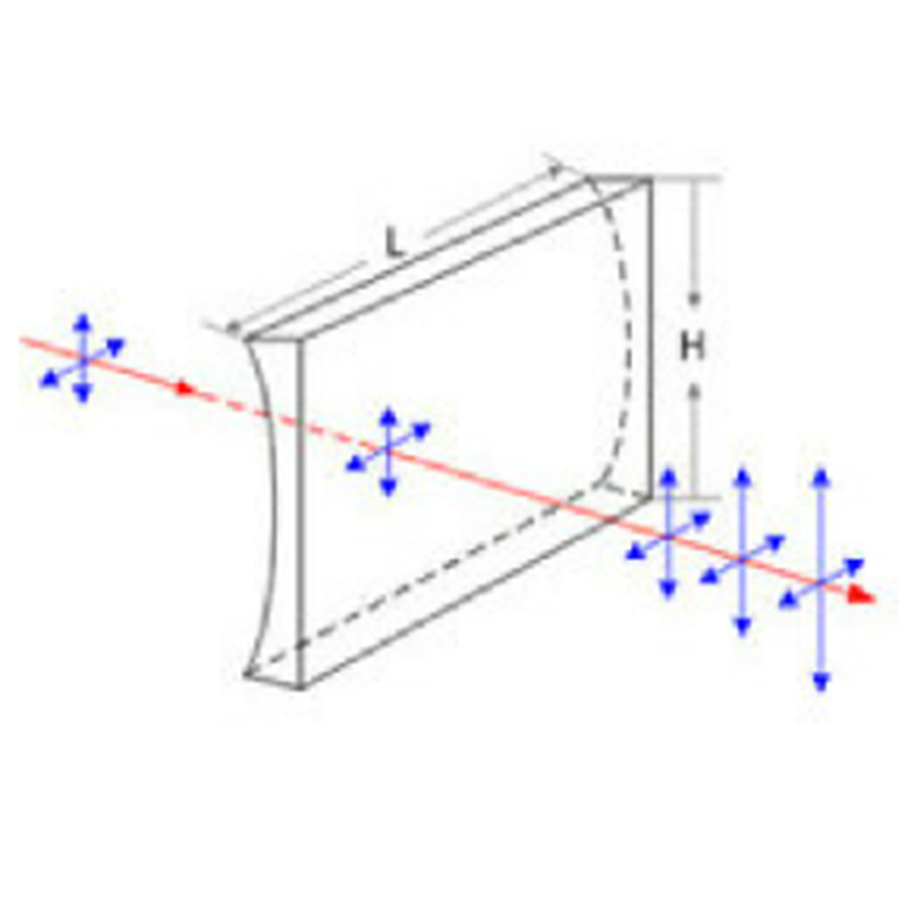 平凹柱面镜 通常用于对光束进行一维整形,起发散光束的作用(柱面透镜)。例如将准直的激光束转换为线光束。客户可根据其所需的工作波长,选镀增透膜。 凹面如选镀反射膜,则相当于平凹柱面反射镜,可用于在一维方向上聚焦光束。通用技术规格参数规格材质H-K9L,H-BaK7尺寸R12-120mm尺寸公差±0.1mm中心误差±3′焦距误差±2%表面处理可选镀膜:增透膜、反射膜等。平行度±0.02mm表面平整度λ/2(Φ20)表面质量40-20Posted in 柱面镜← 平凸柱面镜光纤头镀膜 →